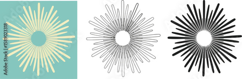 Sunburst vector graphic design element with line art and color versions for designers and creatives vector