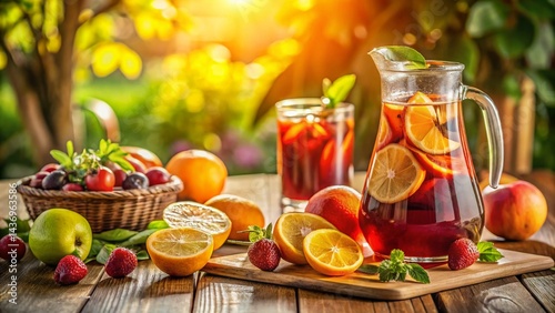 Sun-drenched Summer Sangria & Fruit Platter on Vibrant Outdoor Table