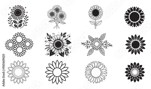 Sunflower Design Bundle, Sunflower icon set.