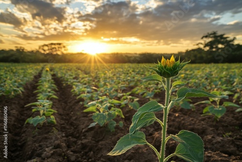 sunflower, field, sunset, rural, landscape, agriculture, nature, plant, blossom, evening, golden hour, growth, vegetation, sunlight, calmness, farming, flora, sky, cloud, horizon, earth, dirtied, scenery, youth, green, daylight, summer, beauty, cultivation, environment, peaceful, vibrant, warm colors, natural, agricultural, blooming, scenic, pastoral, countryside