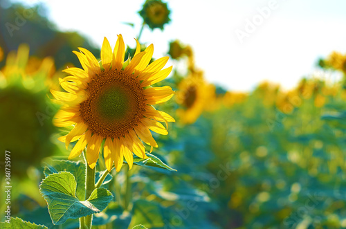 sunflower with yellow petals in the summer field