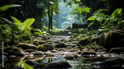 Sunlight filtering through the thick foliage of a tropical rainforest, vibrant flora and fauna, humid and alive with nature??Ts chorus, Photography, s