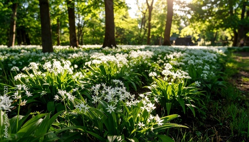 sunlight, forest, flower, white, green, nature, tree, field, blossom, spring, growth, lush, plant, path, ground, park, summer, light, flora, wildflower, fresh, beauty, tranquil, scenic, calm, natural, detail, closeup, carpet, abundant, dense, soft, sharpened, sharp, warm, meadow