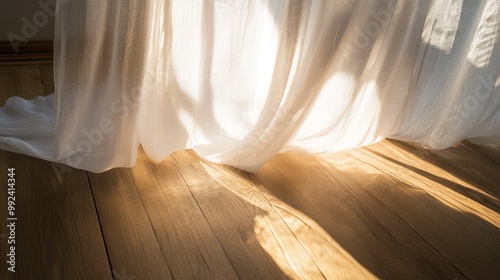 curtain, light, window, sun, sheer, fabric, wood, floor, ray, beam, sunshine, natural, day, bright, interior, home, house, design, decor, white, warm, gold, texture, pattern, soft, gentle, airy, room, living, bedchamber, shadow, photo, still, life, minimalist, simple, elegant, minimal, modern, clean, crisp, cosy