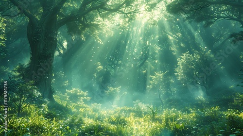 forest, green, sun, light, ray, tree, leaf, canopy, mystical, magical, enchanted, aethereal, serene, peaceful, tranquil, calm, nature, wood, timberland, plant, foliage, shadow, mist, fog, atmosphere, ambience, vibrant, bright, lush, dense, deep, mysterious, fantasy, dreamlike, fairy tale, beauty, wonder, sunlight, summer, spring