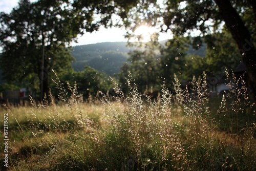 sun, meadow, grass, tree, hill, nature, outdoors, sunlight, morning, evening, summer, light, blurred, field, plant, vegetation, gold, peaceful, tranquil, scenic, view, rural, landscape, countryside, warm, soft, sharpened, delicate, grassy, blurry, background, horizon, misty, sparkle, dew-drop, detail, golden hour, warmth, beauty, calm, green, brown