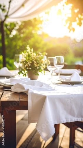 table, setting, dining, sunlit, flower, white, linen, elegant, meal, summer, garden, eatery, romantic, lunch, dinner, nature, peaceful, serene, rustic, wood, ambience