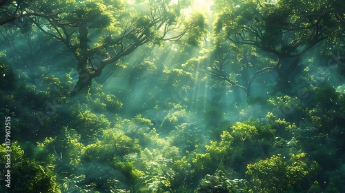 rainforest, tree, green, leaf, sunlight, sunbeam, canopy, forest, jungle, nature, wood, vibrant, lush, tropical, humid, fog, mist, shadow, light, beam, atmosphere, magical, mystical, peaceful, serene, tranquil, calm, quiet, still, beauty, wonder, wonders, breathtaking, awesome, spectacular, gorgeous, stunning, picturesque, scenic, landscape, environment, ecology, flora