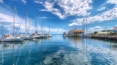 marina, sailboat, sunny, water, boat, harbor, sky, cloud, nautical, peaceful, scenic, relaxation, dock, vessel, travel, journey, leisure, blue, beautiful, horizon, calm, coastal, adventure, idylli, summer, vacation, sailing, marin