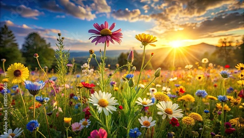 meadow, afternoon, wildflower, photo, colourful, scene, plant, flora, rural, countryside, sunlight, bright, magical, stunning, amazing, picturesque, enchanting, breathtaking, soft light, detailed, image, photo