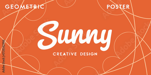 sunny retro poster design with orange background white script lettering geometric curved lines vintage style