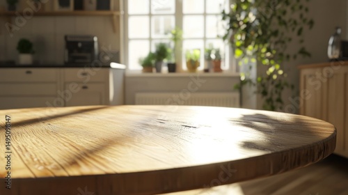 table, wooden, sunny, kitchen, bright, interior, light, warm, round, natural, home, cosy, modern, design, rustic, empty, space, sharpened, blurred, background, window, plant, sunlight, shadow, kitchen utensile, cabinet, detail, wood, grain, surface, clean, simple, homelike, fresh, relaxing, empty space, dining, morning, afternoon, interior design, natural light, home decor