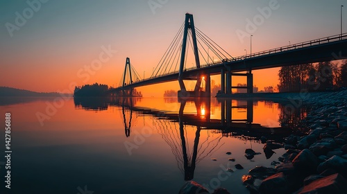 sunrise, bridge, water, sunset, river, morning, evening, sky, cloud, landscape, nature, gold, orange, calm, peaceful, serene, tranquil, vibrant, colours, horizon, symmetry, light, shadow, silhouette, structure, architecture, city landscape, travel, scenic, beauty, photo, view, holiday maker, traveler, explore, amazing, stunning, beautiful, picturesque, destination, journey, relaxation, adventure, memory, moment, visual, photo, image
