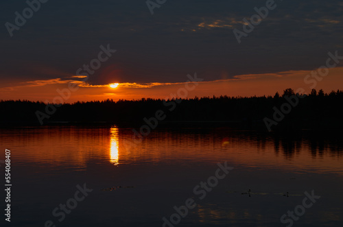 Sunrise in the cloudy sky over the water surface