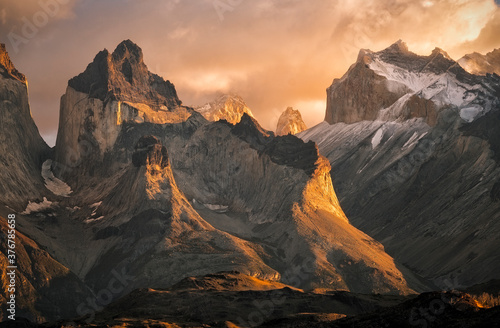 mountain, mountain chain, high, summit, elevation, peak, rock, national park, sunrise, snow, winter, sunlight, cloud, sky, nature, scenic, geology, calmness, landscape, travel, outdoors, no people, nobody, chile, south america
