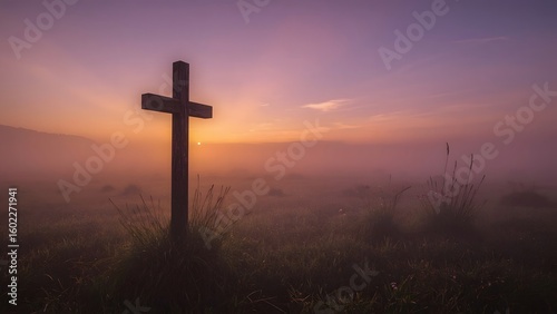 cross, sunrise, fog, morning, field, mist, landscape, spiritual, religion, faith, serene, peaceful, nature, countryside, rural, symbol, wooden, light, gold, atmosphere, quiet, solitude, prayer, hope, worship, scenic, belief, devotion, sun, calm, harmony, sky, jesus christ, religious, god, sunset, crucifix, easter, silhouette, church, catholic, blue, crucifiction, heaven, cloud, death, holy, hill, resurrection