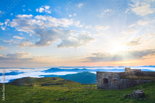 ukraine, blue, castle, cloud, dusk, fortress, highland, landscape, morning, mount, mountain, nature, observatory, range, ridge, ruin, season, sky, stony, summer, sunrise, top, twilight