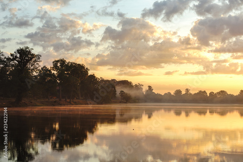 sunset, lake, water, sky, landscape, nature, sun, sunrise, river, dusk, cloud, cloud, evening, forest, blue, dawn, orange, tree, beautiful, morning, tree, horizon, light, silhouette
