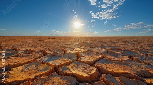 "Sunrise Over a Cracked Desert Landscape Illuminating the Vast Wilderness"