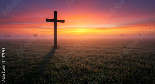 Sunrise Over a Wooden Cross - Easter Resurrection