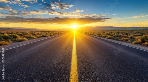 Sunrise over an empty highway stretching endlessly toward the horizon, a journey waiting to begin. --chaos 20 --ar 16:9 --quality 2 --v 6.1 Job ID: dae1427a-9300-4573-88ce-16d2425d68c1