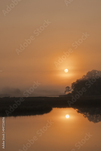 copy space, florida, landscape, mist, nature, outdoors, pensacola, silhouette, sun, sunrise, tree, water, wetland