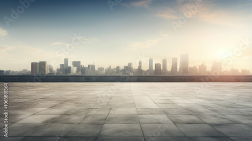 Sunrise Over Modern City Empty Plaza