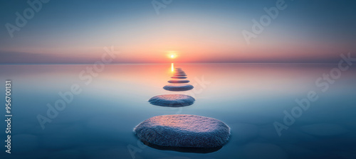 stone, water, sunrise, journey, sea, step, horizon, dawn, light, sky, path, morning, calmness, calm, serene, endless, nature, hope, inspiration, direction, distance, future, meditation, new day, ocean, clarity, blue skies, travel, peaceful, perspective, rise, early morning, adventure, life, glow, spirituality