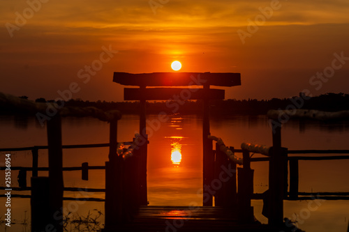 sunset, sun, lake, sky, water, sunrise, silhouette, evening, beach, orange, dusk, landscape, nature, cloud, travel, torii, red, light, city, night, ocean, architecture
