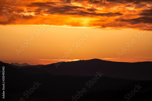 sundown, heaven, sun, nature, landscape, mountain, sunrise, cloud, orange, evening, tonight, red, spark, blue, beautiful, morning, desert, yellow, silhouette, hill, fog