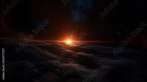 cloud, sunset, sky, star, night, orange, dark, aerial, view, heavenly, celestial, cosmos, atmosphere, horizon, twilight, up high, high, altitude, immensity, immensity, serenity, calm, peaceful, tranquil, dreamlike, magical, wonder, awe, beauty, nature, landscape, panorama, wide, angle, photo, image, picture, photo, scene, shot