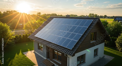 sun, sunset, house, roof, home, solar, panel, energy, electricity, renewable, clean, power, sustainable, technology, photovoltaic, alternative, green, eco, environment, nature, residential, installation, system, efficient, sunlight, generation, conservation