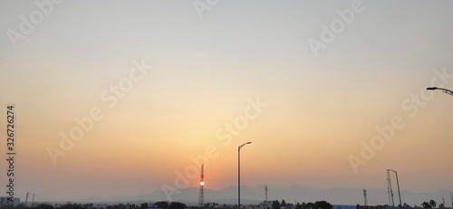 Sunset and sun inside the tower