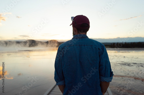 Sunset At Grand Prismatic Spring in Yellowstone National Park