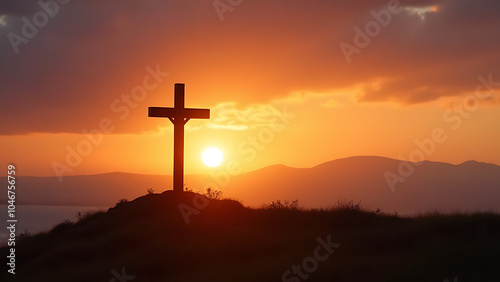 sunset, peaceful, moment, contemplation, cross