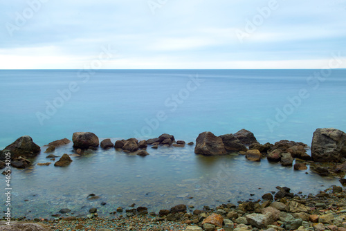 Sunset by the sea. long exposure. Galippoli, Canakkale Turkey. Fishermen's cove.