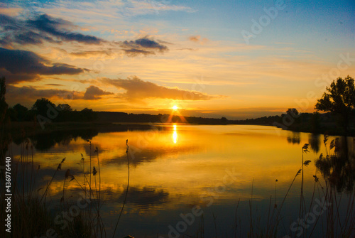sunset, lake, water, sky, sun, landscape, sunrise, nature, river, evening, cloud, dusk, orange, cloud, calm, summer, beautiful, morning, tree, horizon, blue, light, sea, poland, poland