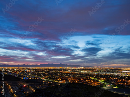 Sunset high angle view of the strip cityscape from Henderson View Pass