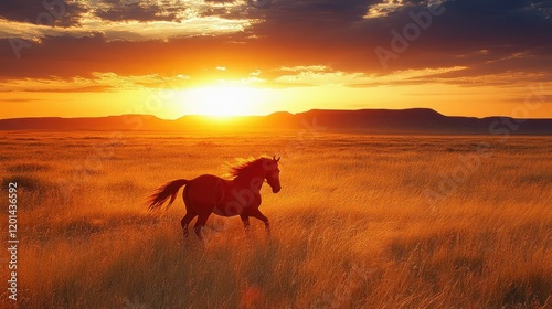 horse, sunset, prairie, run, freedom, landscape, animal, nature, wild, equine, sky, sun, field, grass, gold, majestic, beautiful, wildlife, outdoors, summer, evening, dawn, light, energy, power, speed, motion, calmness, peace, serenity, calm, vibrant, warm, colours, adventure, journey, hope, spirit, west, ranch, fast horse, mare