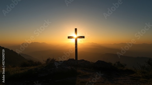 cross, sunset, faith, spirituality, mountain, silhouette, hope, inspiration, nature, serenity, golden hour, landscape, sky, light, symbol, outdoors, peace, photo, christianity, god, beauty, calmness, viewpoint, scenic, mountain peak, emotional, mystical, horizon, warm colors, atmosphere, radiance, morning, spiritual, vibrant, ephemeral, scenery, divine