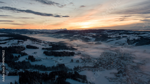 Sunset in Allgäu in the german alps in winter