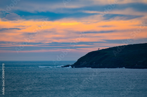 sunset, sea, sky, sun, ocean, water, beach, landscape, coast, nature, sunrise, island, dusk, rock, cloud, california, horizon, travel, evening, red, seascape, orange, summer, shore