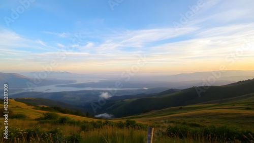 landscape, sky, mountain, nature, cloud, mountain, hill, cloud, grass, forest, tree, summer, green, sunset, meadow, travel, view, vale, panorama, field, sunrise, fog, horizon, sun, tree
