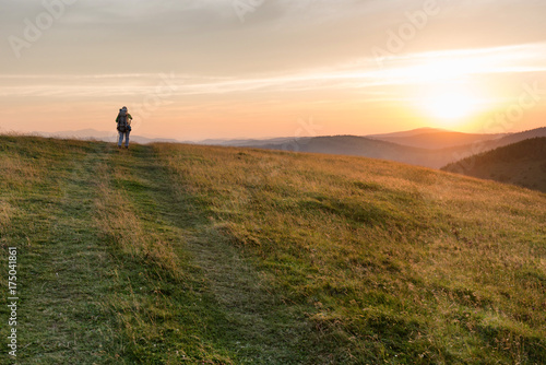 sunset, mountain, landscape, mountain, man, woman, silhouette, sunrise, nature, sun, green, background, sun ray, summer, sky, beautiful, sunlight, colours, cloud, light, dawn, evening, travel, meadow, view, morning, natural, hiking, season, dusk, autumn, forest, environment, scene, tree, grass, country, beam, spring, orange, plant, colourful, tour tourism, vacation, countryside, red, scenic, yellow