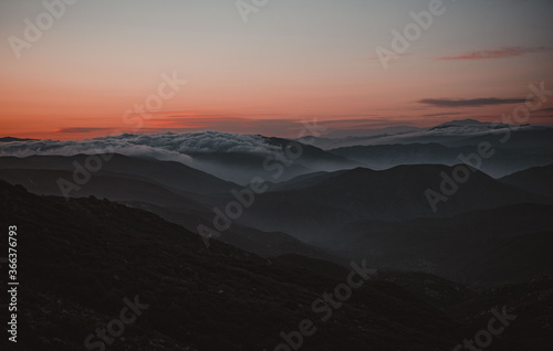 sunset, mountain, sky, sunrise, landscape, nature, sun, cloud, mountain, cloud, morning, evening, fog, blue, hill, dusk, view, light, dawn, beautiful, panorama, horizon, silhouette, sunlight, mist
