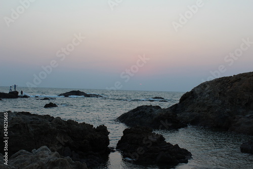 sea, sunset, beach, ocean, water, sky, landscape, coast, rock, nature, sun, blue, rock, seascape, bay, coastline, wave, shore, stone, sunrise, cliff, cloud, summer, wave, beauty