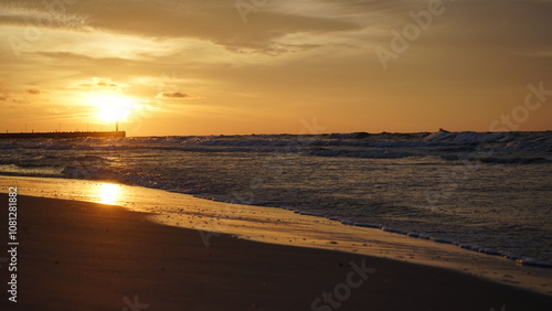 Sunset on the beach by the sea