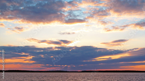 Sunset on the lake in summer