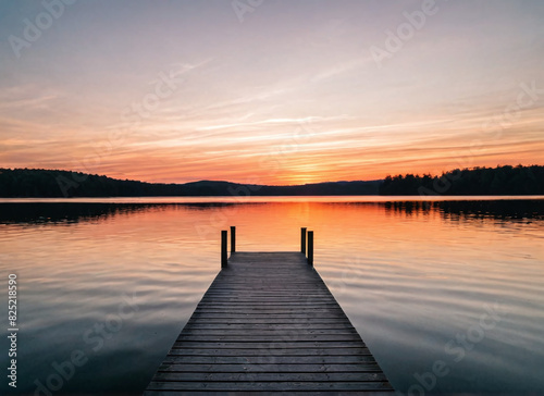 lake, sunset, dock, scenery, landscape, calm, water, dusk, evening, still, mirror, tranquil, peaceful, nature, wooden, breakwater, outdoors, serene, twilight, golden hour, sky, cloud, orange, blue, pink, purple, scenic, relaxing, calmness, beauty, environment, vista, photograph, photo, image, picture, visual, idylli, destination, get-away, vacation, solitude, serenity, escape, wilderness, untouched, breathtaking, vibrant