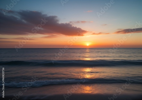 sunset, ocean, beach, calm, wave, serene, peaceful, horizon, sea, evening, dusk, cloud, nature, landscape, shoreline, calmness, coastal, scenic, view, natural, beauty, relaxing, water, summer, vacation, twilight, orange sky, sunlight, sand, oceanfront, cloudscape, golden hour, sun, sunset beach, nature scene, travel